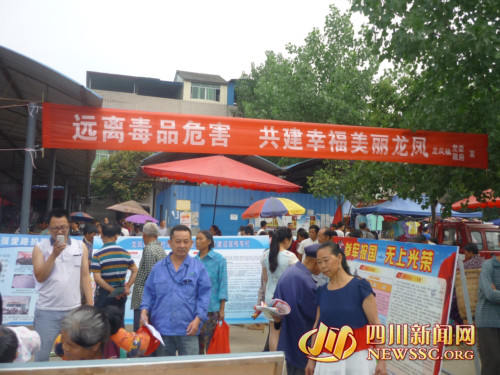 四川新闻网绵阳7月6日讯(张利强 张丹)为了向广大村民宣传毒品的危害,提高其识毒、防毒、拒毒意识和能力,创建无毒平安家庭。“6.26”国际禁毒日,在江油市禁毒委的统一部署下,龙凤镇在农贸市场内,开展了以“远离毒品危害,共建幸福美丽龙凤”为主题的禁毒防艾宣传咨询活动。龙凤镇综治办,派出所,镇妇联和村社区禁毒志愿者等参加宣传,他们向过往群众发放“珍爱生命,拒绝毒品”、“吸毒可耻、贩毒有罪”、《禁毒法》、《艾滋病防治条例》、《新婚姻法》、《女职工劳动保护特殊规定》、《信访条例》等宣传资料2600余份,接待村民咨询60余人次,布置展板10块,张贴如何发现识别毒品宣传画30张 。通过此次宣传活动,使广大群众特别是妇女群众更深刻地认识到禁毒防艾是全社会的责任,动员、引导他们从我做起、从家庭做起,珍爱生命,拒绝毒品,远离艾滋,共建幸福美丽龙凤,在全镇营造了浓厚的禁毒防艾氛围。