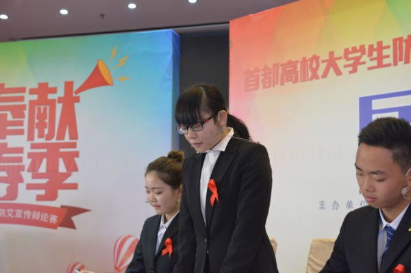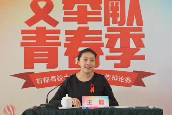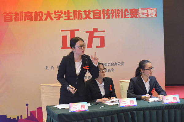 竞赛现场邀请中央民族大学老师,李依霖博士担任辩论主席,在有序的组织工作下,24支参赛队唇枪舌剑,言辞流利,宣传防艾知识,展示防艾观点,一场场精彩辩论席卷而来。