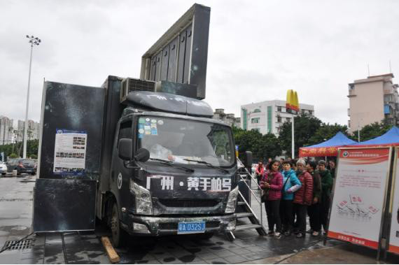 活动现场,“广州·黄手帕号”禁毒宣传巡展车外侧的显示屏一直滚动播放着“如何发现和识别制造毒品工厂、窝点”的禁毒视频,引来许多群众驻足观看;还有部分群众在街镇禁毒办工作人员的引导下有序进入禁毒宣传巡展车内参观,并在讲解员的介绍下了解到各种毒品、制毒原料、制毒设备、制毒场所等知识。此外,工作人员在活动现场共摆放了48块禁毒宣传展板,派发了12000余份禁毒宣传资料,当地的群众纷纷驻足停留仔细观看,还有不少家长特意把孩子们带去学习禁毒知识。