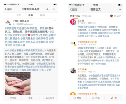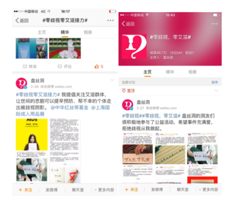 2017年3月1日是第四个世界艾滋病零歧视日。在这一天,中华红丝带基金在微博发起了一项名为“零歧视零艾滋接力”的爱心公益活动,旨在发动年轻的80/90后网络青年群体,普及科学艾滋知识、消除对艾滋患者的歧视。盘丝洞APP也为活动的进行献上了自己的一份力量。