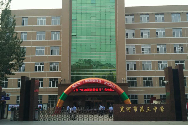图为黑河市第三中学活动现场。中国禁毒网发