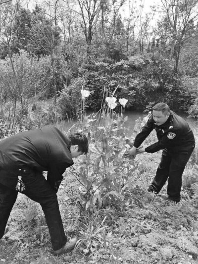 几朵妖艳的花长在地里,在农村,几乎没有人知道它竟是可怕的罂粟。一个多月前,驻村辅警发现异常后,立即上报并现场组织铲除。