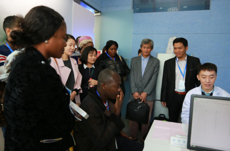 来自非洲国家的代表向淡蓝公益了解快速检测和检测试剂等问题