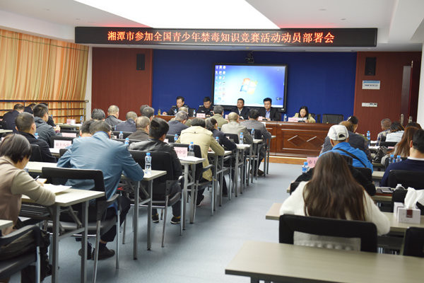 11月6日,湖南省湘潭市公安局禁毒办组织召开参加2017年全国青少年禁毒知识竞赛动员会。湘潭市公安局禁毒办、湘潭市教育局负责人及各县市区禁毒办、教育局、各湘潭市直中学(职)校负责人共计50余人参加会议。会议由湘潭市公安局禁毒办副主任、禁毒支队副支队长张海钧主持会议。