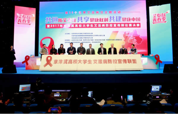 决赛现场,京津冀三地的领导、嘉宾还共同参与启动了“京津冀高校大学生艾滋病防控宣传联盟”,共筑京津冀三地高校防艾控艾“新长城”。