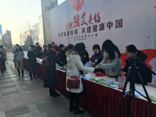 2017年12月1日是第30个“世界艾滋病日”,今年的主题是“共担防艾责任,共享健康权利,共建健康中国”。为深入开展防治艾滋病工作,进一步宣传普及艾滋病防治知识, 12月1日上午,由东城区防艾委主办,东城区疾控中心承办的“世界艾滋病日”主题宣传活动在国瑞城广场举行。区卫计委、区教委、区食药监局、区公安分局、团区委、区文化委、等防艾委成员单位及区第一人民医院、区精保院等相关医疗机构共30余人参加了此次宣传活动。本次活动共发放宣传材料和宣传品5000余份,布置宣传展板14块,同时配合户外LED大屏滚动宣传艾滋病防治知识。本次活动是2017年防治艾滋病宣传月的主活动现场,在宣传月期间,辖区所有街道办事处、各个医疗机构、初中以上学校等单位都将陆续开展丰富多彩的宣传活动,力争在全区掀起新一轮防艾高潮,营造出全民参与艾滋病防治工作的良好氛围。
