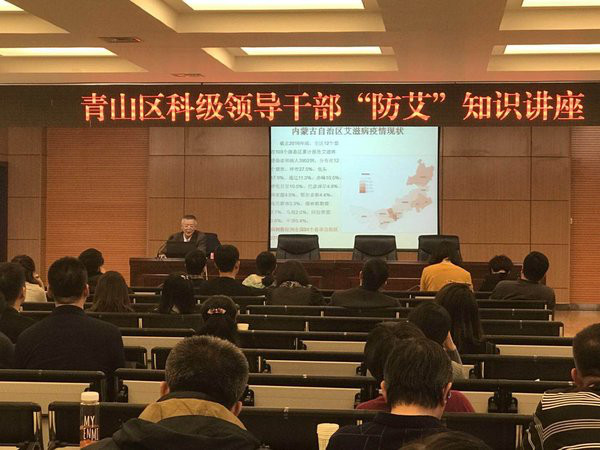 讲座特邀包头市性病艾滋病协会会长王继光为参会干部们讲解了艾滋病的致病机理、传播途径、预防措施以及国家对艾滋病感染者及病人的“四免一关怀”政策,现场发放了《预防艾滋病知识手册》200余册。