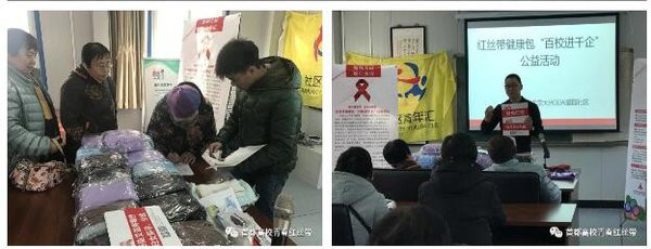 百校进千企送健康包活动是我校青春红丝带社团多次开展过的重要活动,同时也是我校非常重视的活动。如今,越来越多的人开始认识并重视艾滋病。在这个活动中,我校学生不只是给企业员工们带去了健康包,还最大程度的借助了我校师范院校的特色向企业员工普及了艾滋病的相关知识。此次活动在给企业员工送上冬日温暖并普及艾滋病知识的同时也增强了我校青春红丝带社团的凝聚力,是一项十分有意义的活动。
