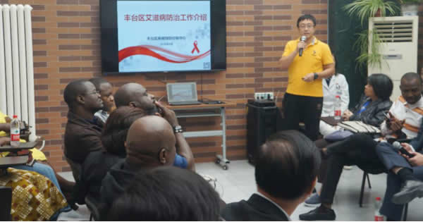 2018年9月19日上午,MWALE JOHN等25位来自非洲、东南亚及俄罗斯等国的艾滋病防治专家参观了北京市丰台区蒲黄榆社区卫生服务中心及美沙酮维持治疗第七门诊,并就艾滋病防治工作进行了交流。中国疾病预防控制中心艾防中心信息交流与合作室主任胡翼云、干预室李丽,北京市疾病预防控制中心性病艾滋病防制所所长卢红艳,丰台区疾病预防控制中心副主任谢彧洋、性病艾滋病防制科科长王欣心,蒲黄榆社区卫生服务中心主任刘宏,书记冯鑫等人陪同了本次参观交流活动。