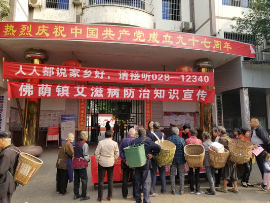本次活动设立了艾滋病知识宣传咨询台,在农贸市场、学校、医院、高速路口等设置宣传标语8幅,发放宣传材料100余份,前来咨询人数50余人。活动现场,在镇领导的带领下,宣传人员为群众们免费提供艾滋病知识宣传、健康咨询等服务。佛荫镇还通过宣传车在场镇循环播放防治艾滋病知识,社区工作人员走上街头,为老龄人群进行知识普及,提高了群众对艾滋病的认识。