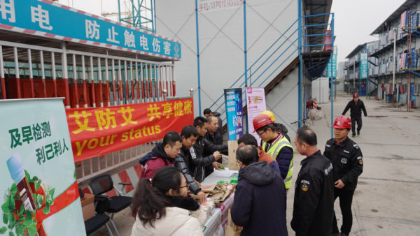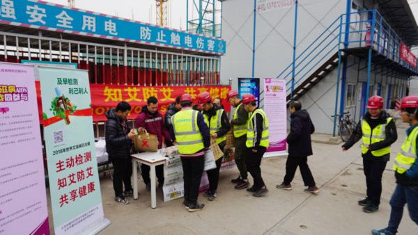11月23日,通州区疾控中心联合区住建委走进北京城市副中心项目生活区,组织工人代表开展主题为“主动检测,知艾防艾,共享健康”艾滋病知识宣讲活动。