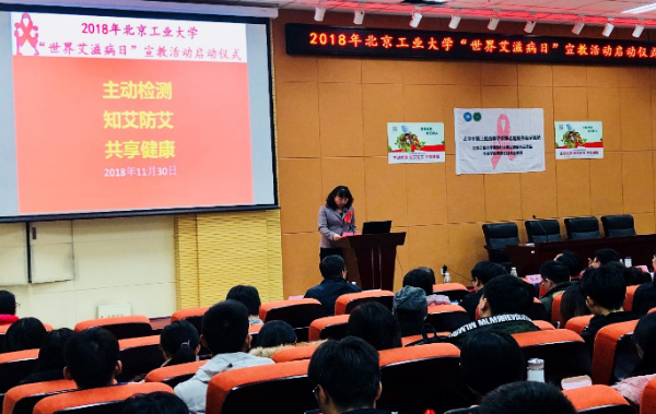 11月30日,在第31个“世界艾滋病日”到来之际,朝阳区疾控中心与北京工业大学生命学院在生命学院B107学术报告厅举行联合举办了主题为“主动检测,知艾防艾,共享健康”的大型防艾宣教活动。