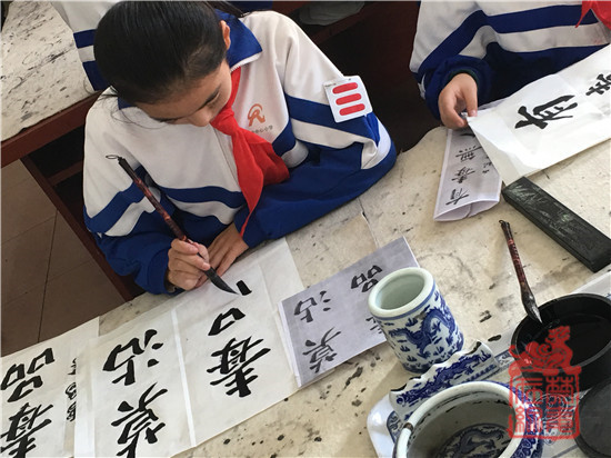 比赛现场,城南中心小学和旧县小学的20名小小书法家在书法教室尽情地泼墨挥毫,一幅幅书法作品书写着“毒品莫沾”、“生命可贵,毒品害人”、“毒品不除,永无宁日”等禁毒宣传标语,字体苍劲有力、严肃端庄,将禁毒意识同艺术造诣融为一体,坚定了同学们抵制毒品的信心和决心,要积极加入到禁毒斗争中。