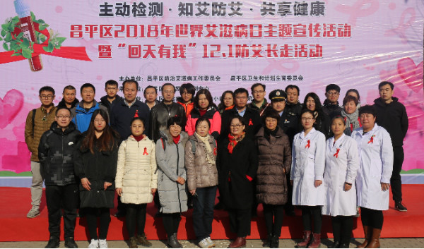 为进一步推动昌平区艾滋病防治工作,全面贯彻落实国务院《艾滋病防治条例》和《中国遏制与防治艾滋病“十三五”行动计划》,结合“回天有我”及“健康北京2030行动”计划,营造全民参与艾滋病防治工作的良好氛围,2018年12月30日,昌平区举办2018年世界艾滋病日主题宣传活动暨“回天有我”12.1防艾长走活动。昌平区防治艾滋病委员会办公室主任、区卫生计生委副主任谭光剑、东小口镇副镇长嵇杰、区疾控中心副主任王秀云、区结防所所长马树波,区防艾委各成员单位、各医疗卫生单位、各高校相关同志以及东小口镇社区志愿者代表共400余人参加了此次活动。