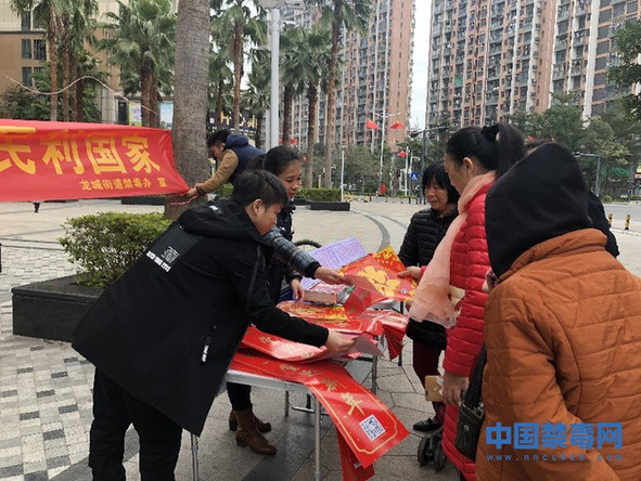 活动现场,禁毒社工把一个个春节“禁毒大礼包”送到社区居民手中,还通过设置毒品仿真模型展示和禁毒知识讲解等,派送春联的同时也向居民宣传禁毒知识。