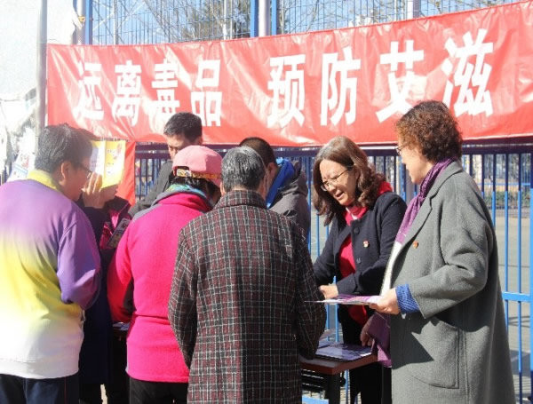 为提高广大居民远离毒品、预防艾滋病的意识,根据《北京市卫生健康委员会关于今冬明春期间集中开展禁毒宣传工作的通知》文件要求。2019年3月22日上午,密云区疾病预防控制中心在辖区密虹公园开展“远离毒品,预防艾滋,珍爱健康”为主题的禁毒防艾宣传活动。活动期间悬挂横幅一条,发放宣传折页200余张,扑克牌300余副,手机指环扣50余个。现场为200余名群众讲解常见毒品种类、危害,以及艾滋病防治知识等内容。