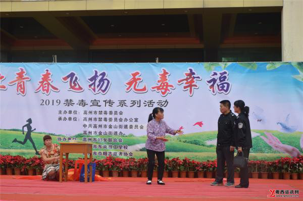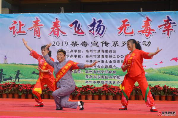 为深入贯彻落实《禁毒法》,强化禁毒宣传教育,提高学生们的禁毒意识,营造浓厚的禁毒舆论氛围,3月19日,由高州市禁毒委员会主办,高州市禁毒委员会办公室、中共高州市金山街道委员会、高州市金山街道办承办,高州市妇女联合会、茂名市东南技工学校、高州市巾帼志愿者协会协办的“让青春飞扬,无毒幸福”禁毒宣传活动在茂名市东南技工学校举行。