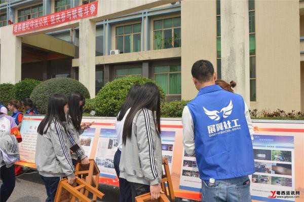 禁毒宣传表演结束后,展翼社工开展了相关禁毒宣传主题系列活动。针对学生好奇心强、辨别是非能力弱以及对毒品危害性和吸毒的违法性缺乏认识等特点,展翼社工设置了禁毒宣传展板、毒品仿真样品,通过面对面的禁毒知识讲解让学生们感受到毒品带给人们精神和身体上的伤害。并开展“甩掉毒瘾”互动小游戏,寓教于乐,使学生们在轻松愉悦的游戏中加深对毒品的了解,消除了在毒品认识上的误区,学生们纷纷表示要从自我做起,做社会、家庭的“禁毒”宣传员,让身边的人远离毒品。(通讯员:张欣 许诗舸)