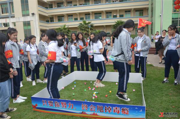 “让青春飞扬,无毒幸福”禁毒宣传活动内容丰富,师生们整齐地坐在校园内,共同欣赏禁毒宣传节目。《都是毒品惹的祸》、《我是禁毒宣传员》、《珍爱生命,远离毒品》等节目既贴近生活又别出心裁,引起了学生们的强烈反响,切实加强了同学们对毒品危害的认识,把拒毒、防毒的种子植入学生们的心田。同时,结合现场禁毒知识问答,多形式让学生们深入了解禁毒知识和毒品的危害,进一步增强了学生们的禁毒防范意识。