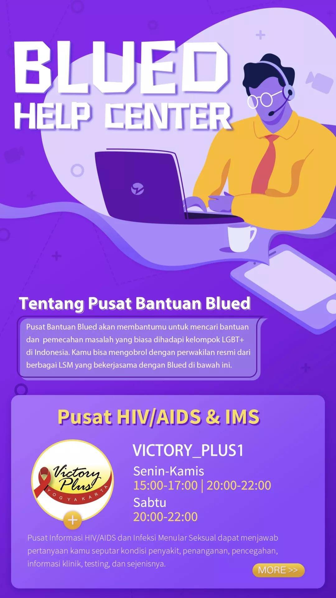 近日,Blued印尼用户打开软件时,会发现站内咨询平台「Blued Help Center」已上线。据了解,今年3月,Blued邀约当地公益组织VictoryPlus一起,在站内开设了求助账号,为用户集中提供防艾线上咨询等信息服务。