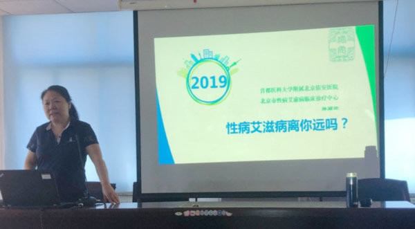为贯彻落实《艾滋病防治条例》、《性病防治管理办法》(卫生部令第89号),规范辖区内医疗机构性病艾滋病综合防治工作流程,保证艾滋病疫情报告、性病防治及医务人员主动提供艾滋病咨询检测服务(PITC)工作的顺利开展,丰台区疾控中心于2019年5月13日下午在中心三楼第一教室举办了“丰台区医疗机构HIV阳性处理流程及性病防治技术培训班”。本次培训邀请了首都医科大学附属北京佑安医院的孙丽君主任进行授课。来自辖区20家医疗机构的30余名性病门诊医生及疫情管理大夫参加了培训。