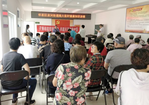 按照怀柔区禁毒委员会下发的《怀柔区2019年全民禁毒宣传月工作方案》要求,我中心以此为契机在辖区居民中开展了以“健康人生,绿色无毒,远离艾滋病”为主题的禁毒防艾宣传活动。泉河社区卫生服务中心工作人员于2019年6月13日、17日两个上午的时间,在富乐北里和南大街2个居民相对集中的居委会进行了禁毒防艾知识宣讲活动。工作人员现场讲解了什么是毒品、毒品的种类和危害、吸毒与艾滋病传播的关系以及预防艾滋病应知知会的科普知识,受众人群120人左右。讲座结束后还现场进行了艾滋病知识知晓率调查,结果显示艾滋病知晓率为100%。通过对居民禁毒防艾知识系列宣传活动,让受众对象了解了远离毒品,预防艾滋病的必要性。