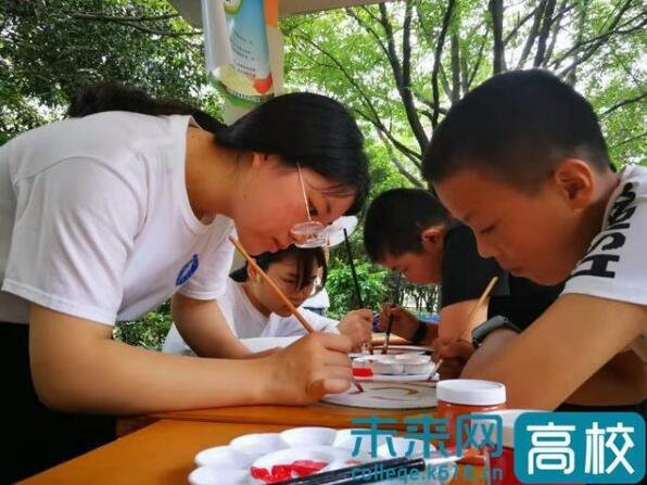实践调研团成员教小朋友绘画图(张晨玲 摄)