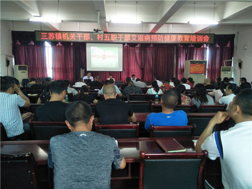 四川新闻网眉山7月23日讯(潘相宇 文/图)为深入贯彻落实艾滋病防治工作有关要求,有力、有序、有效推进“十三五”期间艾滋病防治工作,提高人民健康水平。7月23日上午,东坡区三苏镇组织召开艾滋病预防健康教育培训会,全体机关干部、村五职干部共计100余人参加。