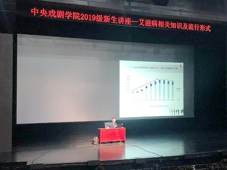 2019年9月2日下午,东城区疾控中心性艾科到中央戏剧学院(昌平院区),对2019级新生进行了防治艾滋病知识的培训。正值新生军训期间,所有新生及军训教官共700余人参加了本次培训。
