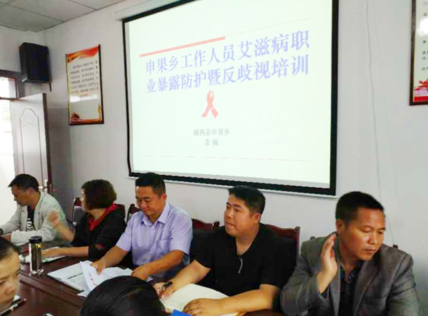 随后,申果乡艾防计生专职副书记袁锐同志通过多媒体授课的形式,为全乡干部职工讲解了艾滋病防治知识。他从艾滋病的病理生理、发病机制、预防与治疗以及工作人员的职业暴露风险等方面对艾滋病知识进行了全面的讲解和分析,要求大家要做到对艾滋病早发现、早治疗、早报告。