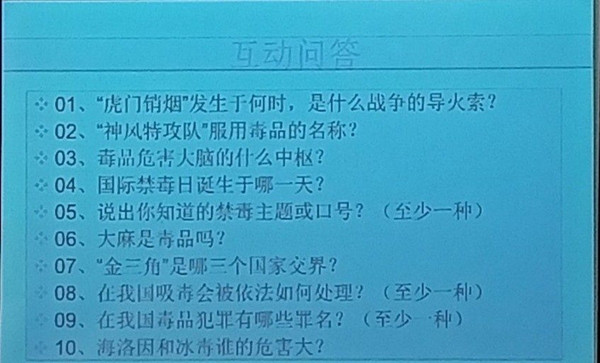 毒品能治病吗?毒品有哪些种类和特征?毒品和药品有什么区别?毒品会给个人、家庭和社会带来怎样的危害?怎样做到远离毒品、预防艾滋病?张朝伟警官用一个个生动的案例和“时髦”的语言,为大家带来丰富实用的禁毒知识,解答孩子们心中的疑惑。