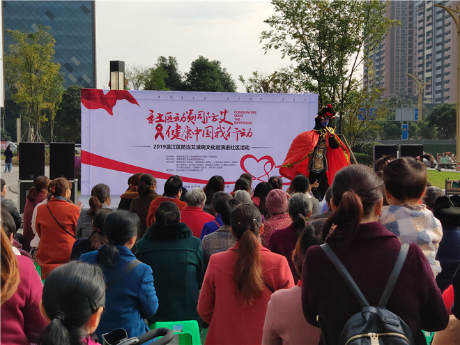 四川新闻网成都11月14日讯 12月1日是第32个“世界艾滋病日”, 为进一步增强辖区内居民对艾滋病的预防和保护意识,遏制艾滋病的传播和蔓延,11月14日上午,温江区金马镇卫健办联合区防艾办、金马镇中心卫生院等相关部门在东原城广场开展了以“健康温江,以爱同行”为主题的公益演出。