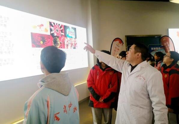 首先以问题为导向,提出了“艾滋病的全称是什么?”“艾滋病传播的主要途径是哪些?”“全国艾滋病较严重的省份和城市有哪些?”等一系列关于艾滋病的问题,吸引同学们的注意,引起他们对艾滋病防治的关注。带着疑问和好奇心,袁晓明副主委带领同学们开始自由参观防艾基地。参观过程中,袁晓明副主委结合防艾基地的图册及展示内容,不断地向同学们讲解防艾知识以及目前国家防艾研究的新进展,并用通俗易懂的方式向同学们解答艾滋病的有关问题,帮助学生答疑解惑,丰富他们的防艾知识。自由参观结束后,在袁晓明副主委专业、细心的讲解下,同学们对艾滋病的发病原理、传播途径、及时预防及对身体的伤害等方面有了初步的认识,同学们在心中筑下了一道“防艾墙”。