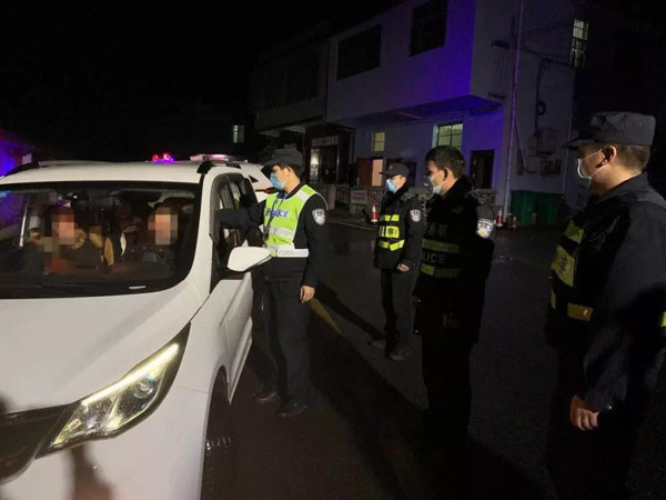 上高县公安局禁毒大队民警协同徐家渡派出所防控人员对来往车辆进行逐一检查,对往来人员进行体温测量。