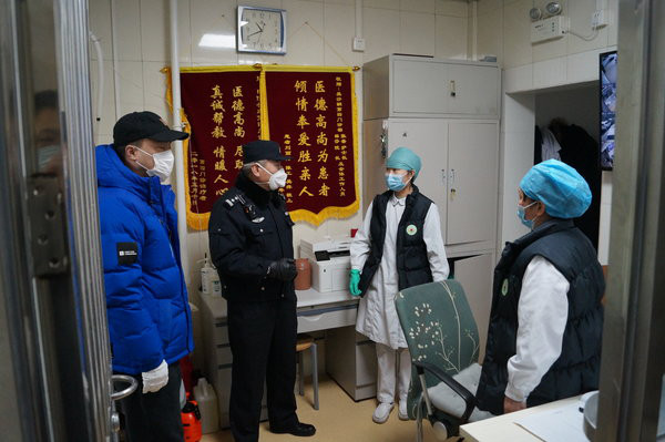 3月3日上午东城区禁毒大队杨捷棣副大队长、冯光尧警官一行到东城区精保院社区药物维持治疗门诊进行疫情期间安全工作督导。