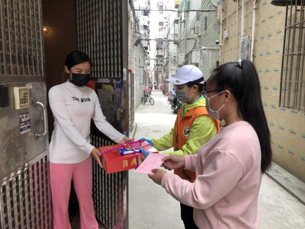 石岩街道禁毒社工为居民送上生活必需品。中国禁毒网发