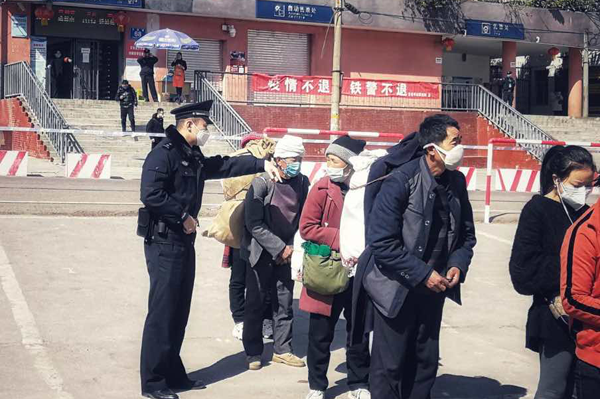 “您好,从哪里回来的?请把身份证准备好,在那里登记一下。”