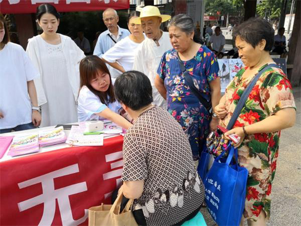 在沿滩区宣传点,多种多样的宣传形式引来众多市民驻足观看;冒着高温,来自沿滩区妇幼保健院的杜良群,热情的接待着每一名前来咨询的市民,为他们体检义诊的同时,不失时机的宣传禁毒防艾知识。