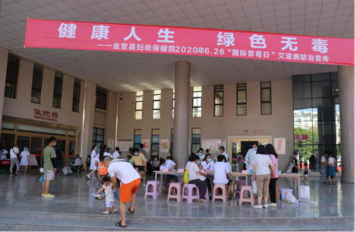 四川新闻网成都6月28日讯 6.26是国际禁毒日,为了增强广大群众防毒拒毒的禁毒意识,创造绿色无毒的社会环境,6月24日上午,金堂县妇幼保健院在院内开展了以“健康人生,绿色无毒”为主题的国际禁毒日艾滋病防治宣传活动。
