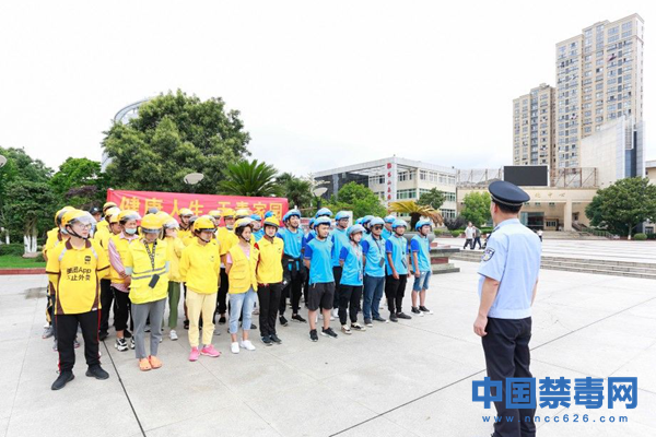6月23日,浙江省舟山市岱山县公安局,禁毒大队民警为外卖骑手讲解毒品的种类和危害性。