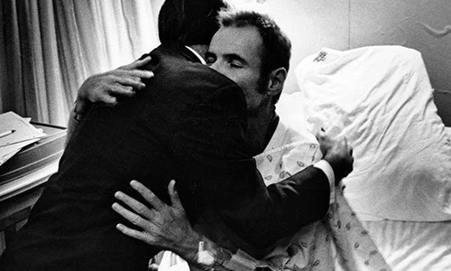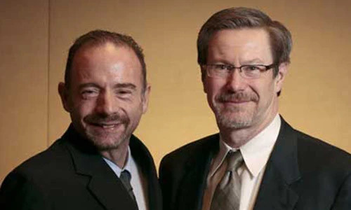 照片来源:蒂莫西·雷·布朗(蒂莫西·雷·布朗)(左)与德国血液学家一起进行了治愈他的移植手术。摄影:Robert Hood / Fred Hutch News Services。