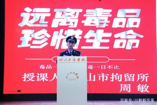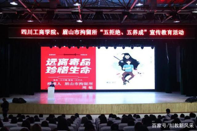为进一步加强师生思想政治教育,促进良好校风、学风、教风的形成,持续推进“五拒绝 五养成”宣传教育活动深入开展,10月27日,四川工商学院教育学院在东坡演艺厅开展禁毒防艾知识宣讲活动。眉山市拘留所民警周敏为该校师生上了一场生动的禁毒防艾公开课。