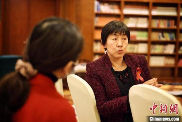 图为来自联合国艾滋病规划署、中国及北京市疾病预防控制中心、首都医科大学附属北京地坛医院、北京红丝带之家、湖北随州“光满·爱心红丝带”共产党员服务队的嘉宾现场接受访谈。李雪峰 摄