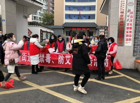 为防止毒品和艾滋病漫延,争创全国禁毒示范城市,12月14日,四川眉山市彭山区观音街道组织禁毒社工与社区网格员在观音集市开展禁毒防艾宣传活动。