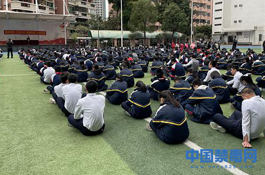 当日9点30分,学校师生聚集在操场上进行了隆重的升旗仪式。海珠区人民检察院钟铮警官、新港街派出所赖开全警官分别向师生们讲解毒品危害、种类、禁毒相关法律政策及防范毒品技巧,并呼吁同学们提高识毒、防毒、拒毒意识,珍爱生命,远离毒品。