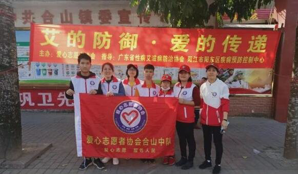 近日,在阳东区防艾办的指导下,爱心志愿者协会合山中队队长周健茹同志带领中队骨干及志愿者在合山镇政府门口开展 “艾的防御,爱的传递”主题防艾宣传活动,为群众进行防艾知识宣传。