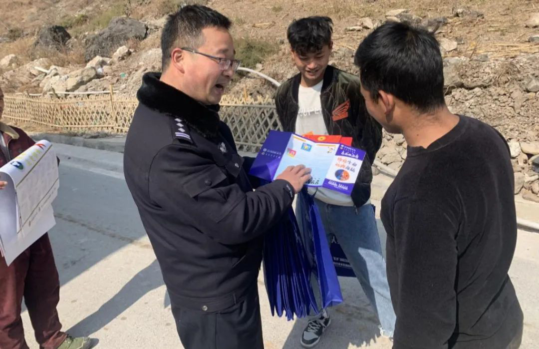 午时,驻站民警达到村委会后,随即展开工作。站长刘海向村干部详细了解乡村建设和居民生活情况,参观禁毒防艾基地,交流探讨禁毒防艾工作经验。工作站特意为村里送去了禁毒防艾、《宪法》《民法典》等彝汉双语资料。