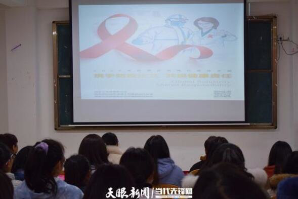 师生们观看“防艾”宣传片学习艾滋病防护知识