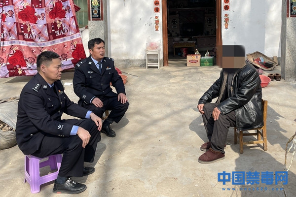 图为禁毒民警与涉毒人员家属进行交谈。中国禁毒网发