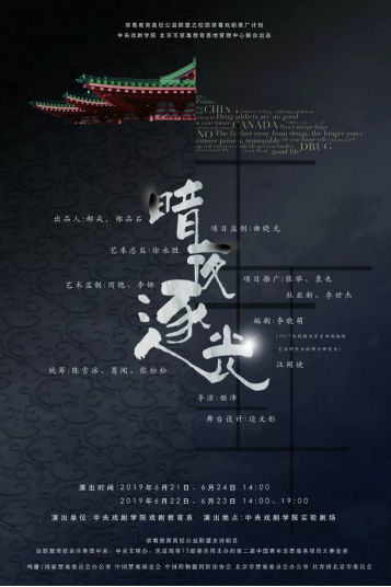 6月21日,由中央戏剧学院和北京市禁毒教育基地管理中心联合出品的话剧《暗夜逐光》,在中央戏剧学院实验剧场首演。